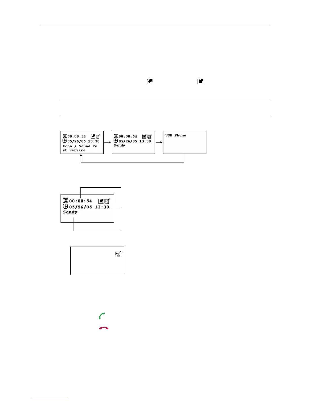 and main screen. Most recently dialed or received call is displayed first.