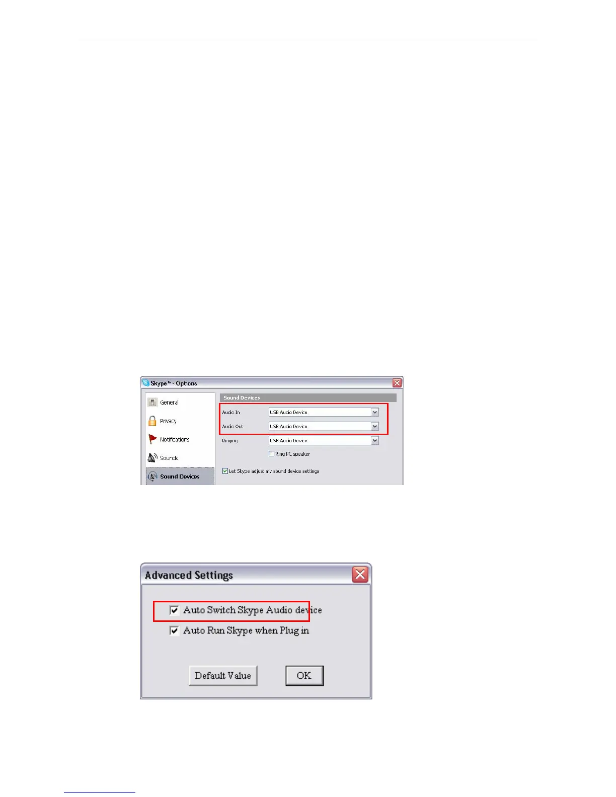 Settings of the utility control panel. This ensures Skype always uses the USB