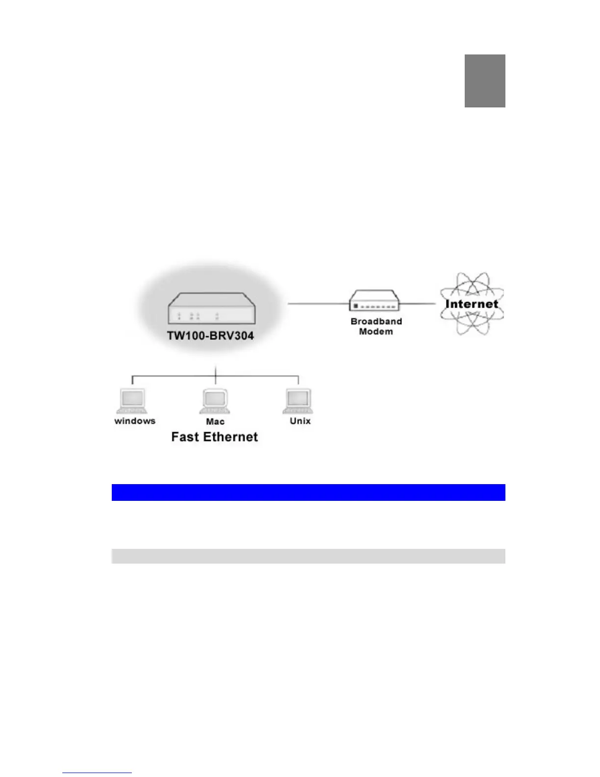 DSL & Cable Modem Support. The TW100-BRV304 has a 100BaseT Ethernet port