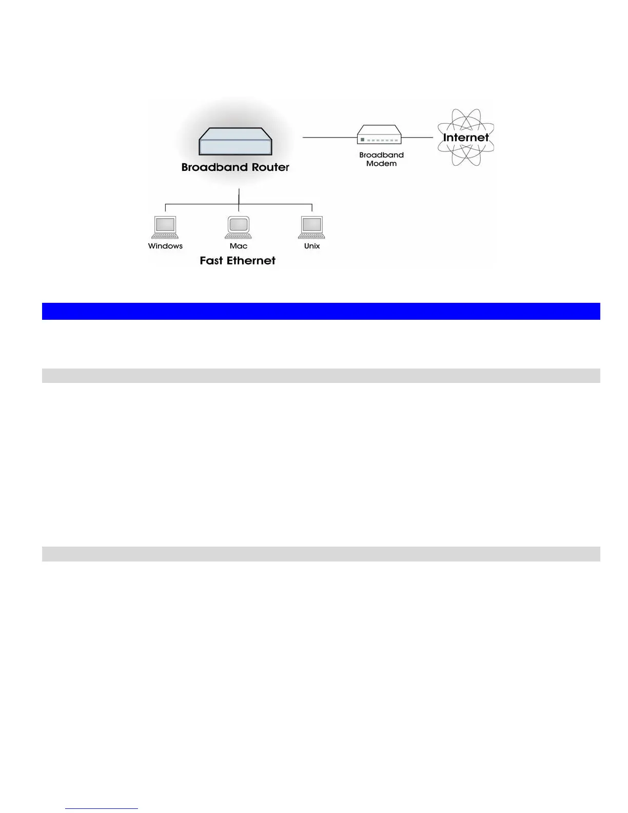 • Shared Internet Access. All users on the LAN or WLAN can access the Internet through the Broadband Router, using only a