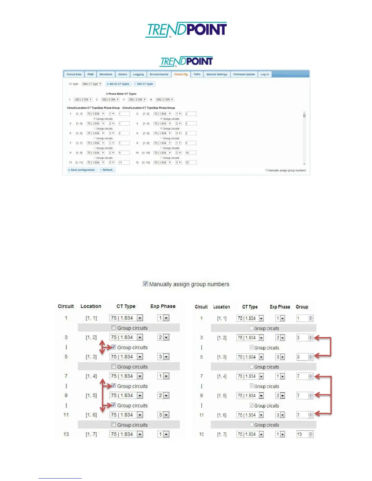 automatically by checking which circuits you want grouped. To manually group circuits
