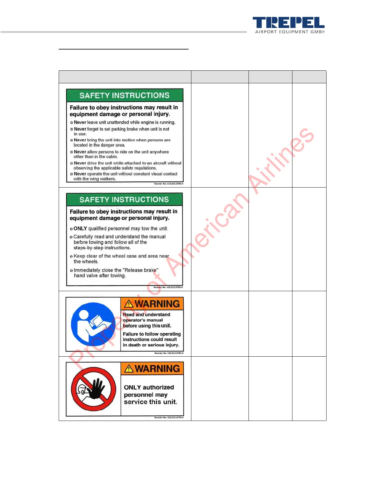 The following safety instructions and signs have to be attached on the CHALLENGER550: