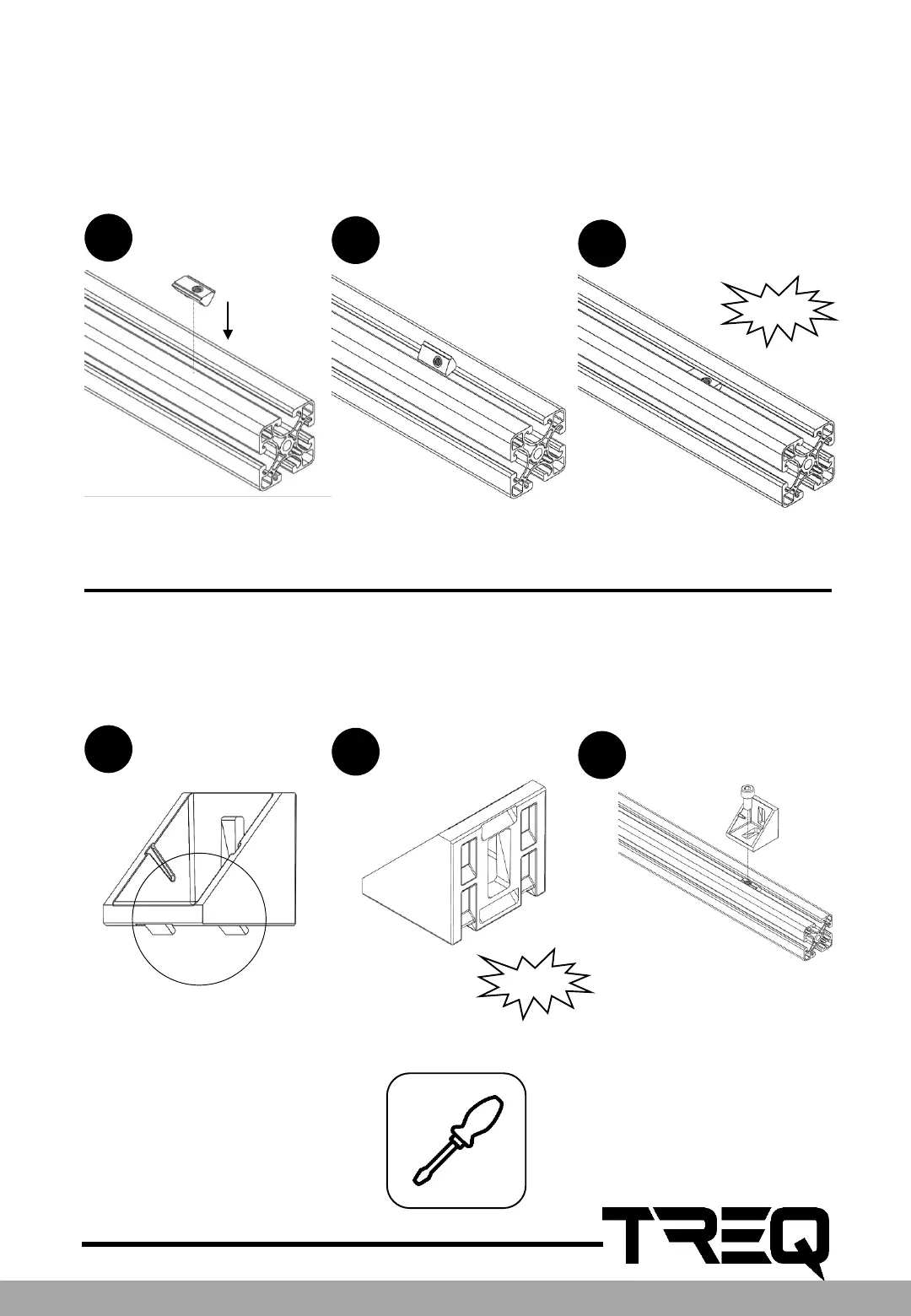 The easiest way to mount the click-in-nuts, is to slide them in from one side of the profile. But
