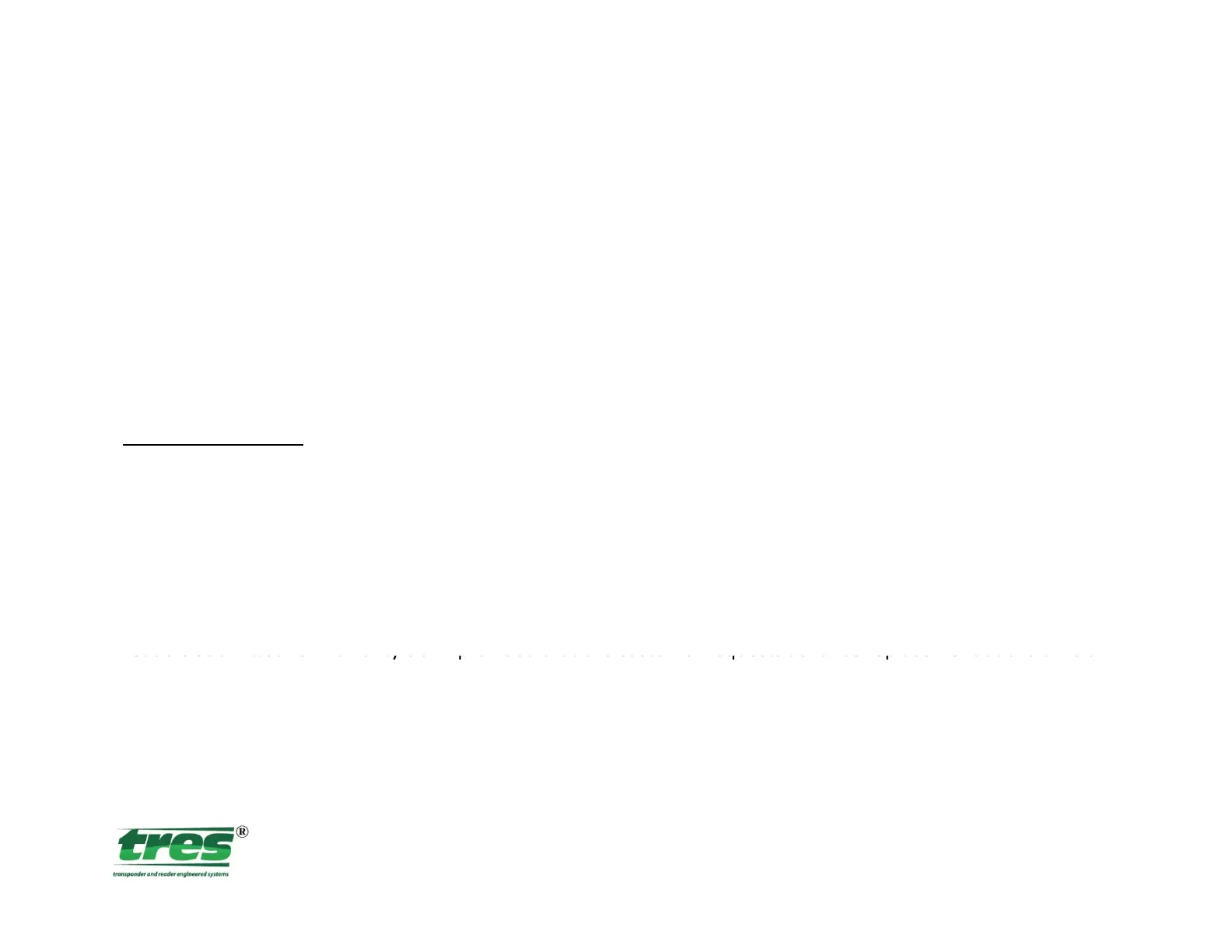 Transponder & Reader Engineered Systems, Inc. warrants its tres900 tag readers, cards and tags