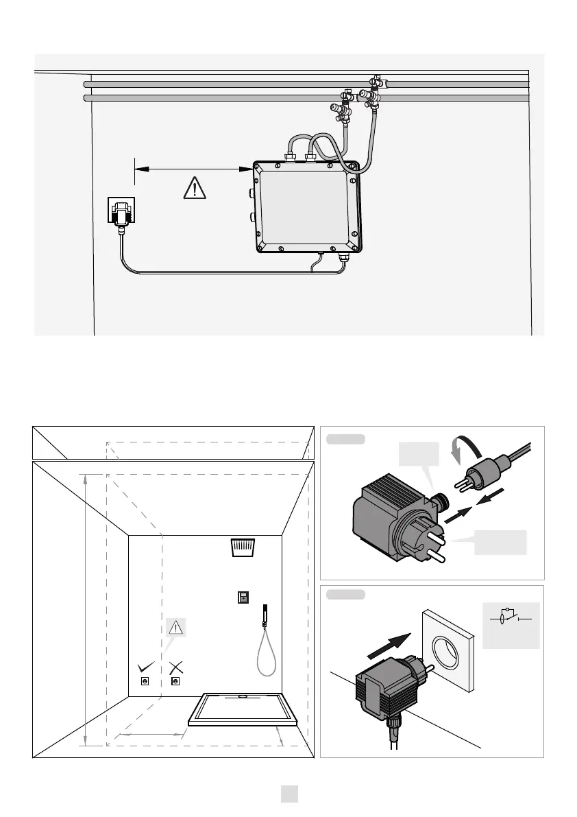 Tres Shower Technology - Installation Space and Power; Installation Clearance and Dimensions; Electrical Connections
