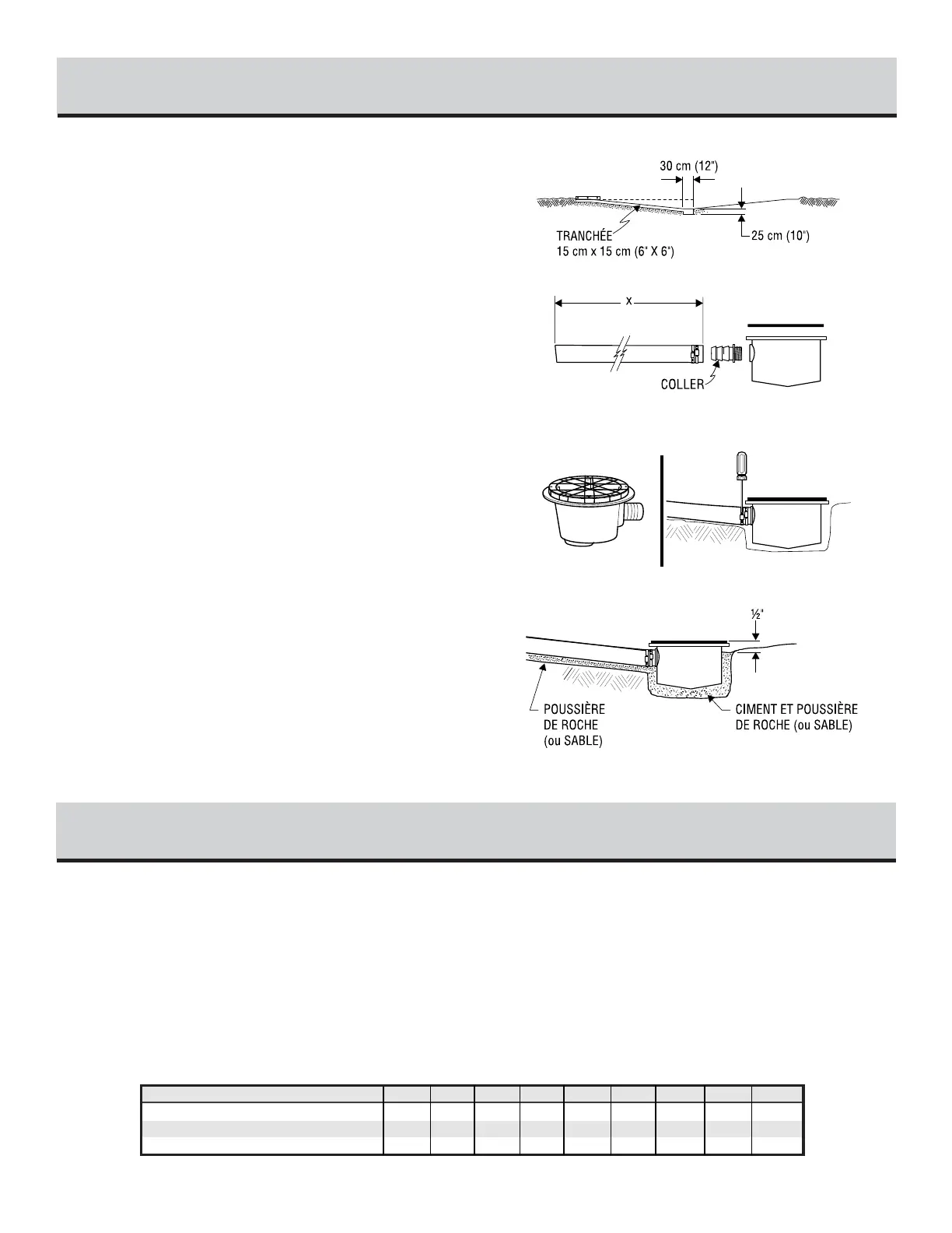 autour du drain jusqu'à 1,3 cm (1/2") sous le dessus du drain.