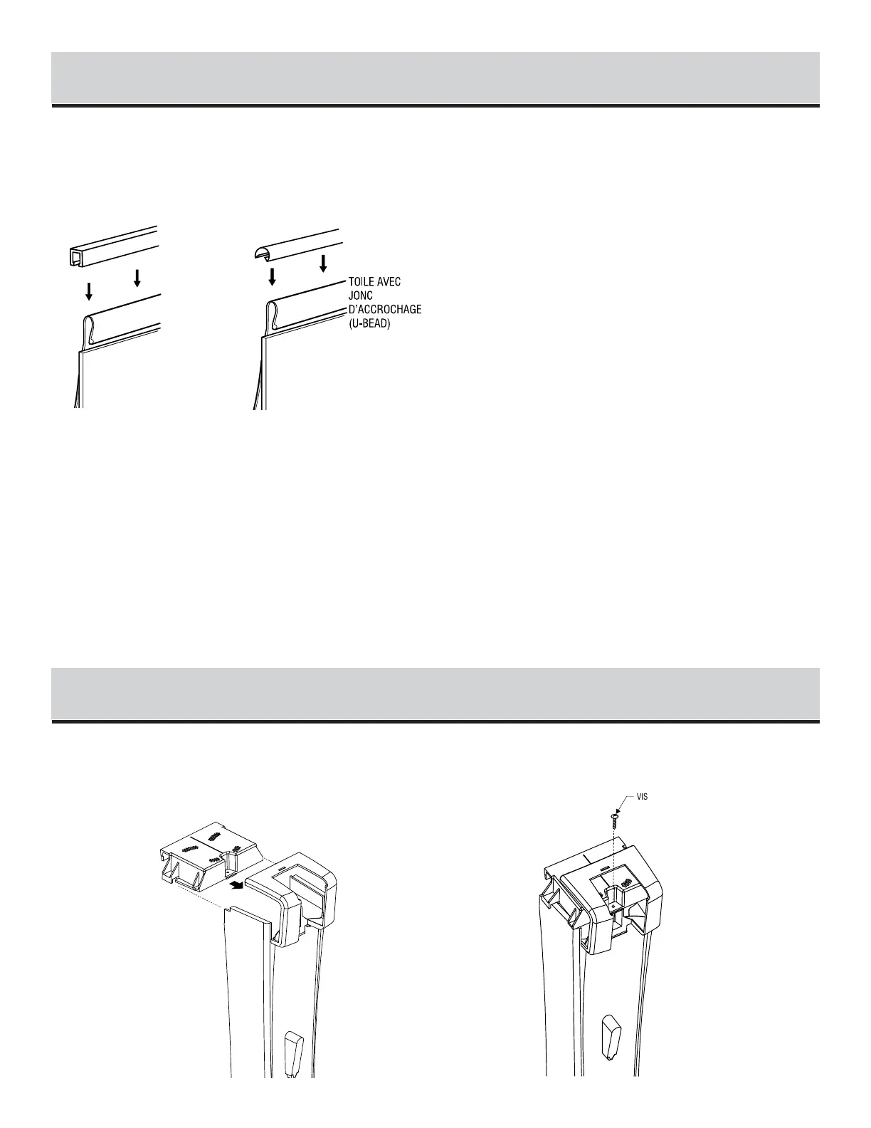 Détail de l’installation de la toile avec jonc d’accrochage.