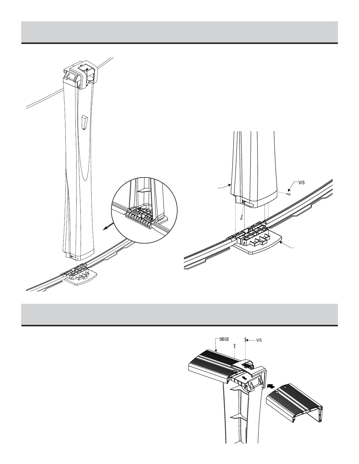 Centrez les sièges entre les deux poteaux et maintenez-les en place