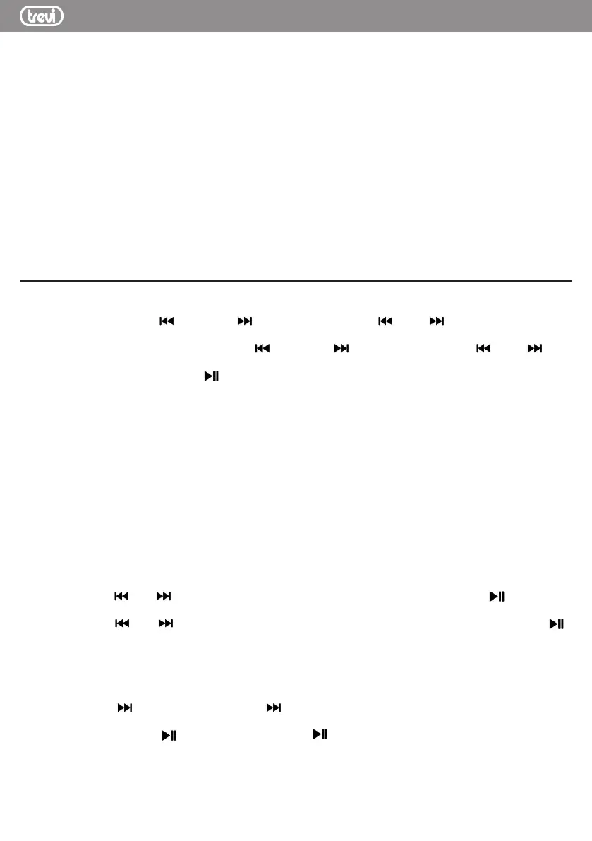 5. Premere il tasto F-/CH- (28) o F+/CH+ (26) del telecomando per scorrere le varie stazioni FM memorizzate;