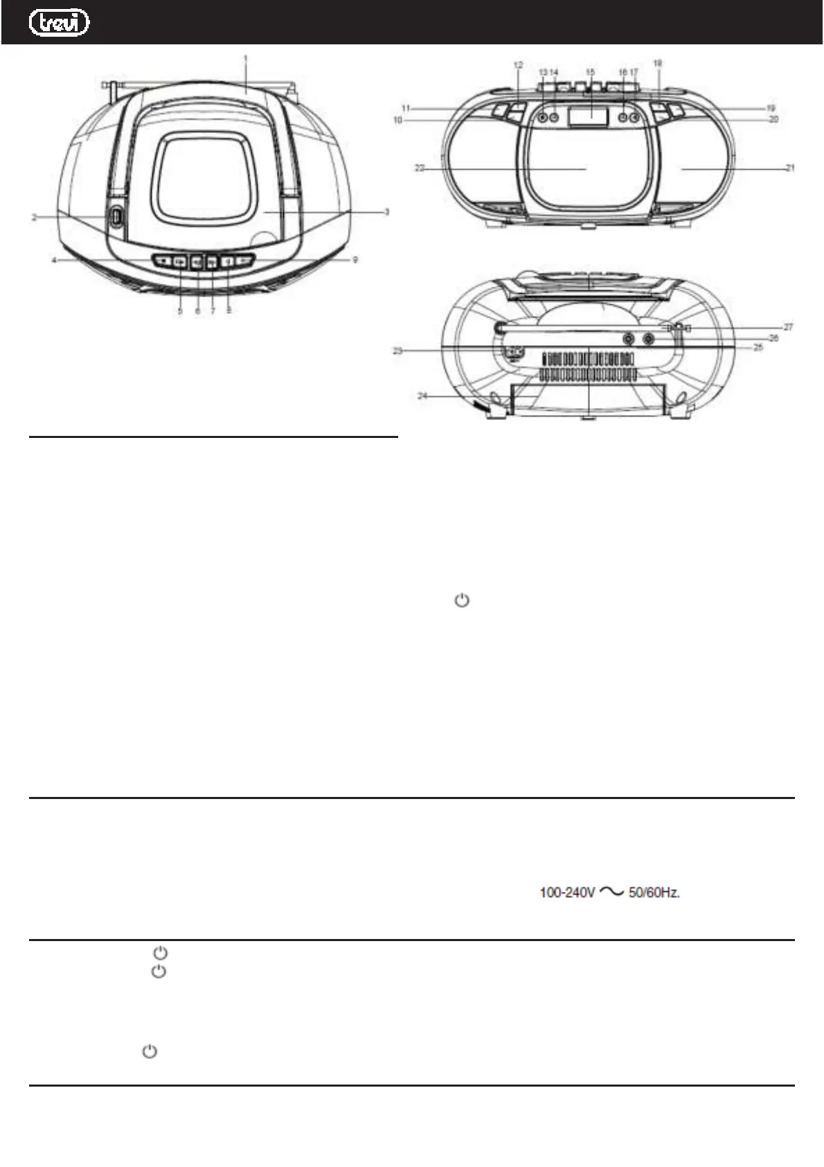 Schließen Sie das Netzkabel an die Steckdose (23) an. Stecken Sie den Stecker in eine 100-240V 50/60-Steckdose.