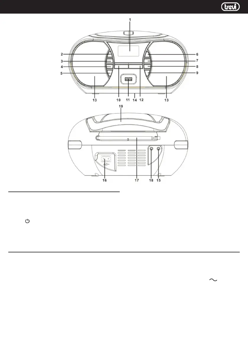 1. Presione el botón STANDBY / FUNC (6) para encender la unidad.