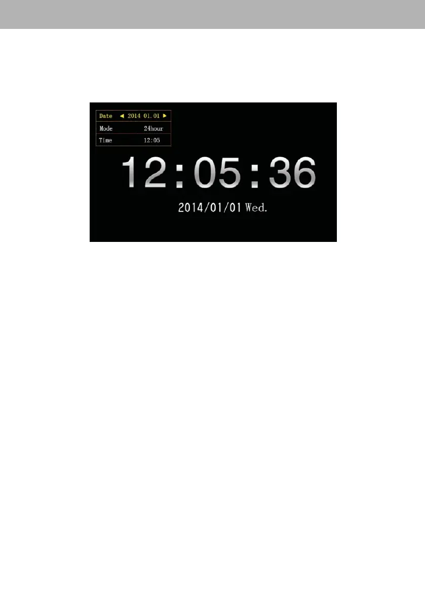 In clock and calendar screen, long press “EXIT” button to pop up the setting dialog box. Move the