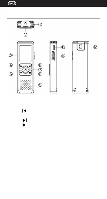 5. Tasto V, per la regolazione del Volume e cambio cartella