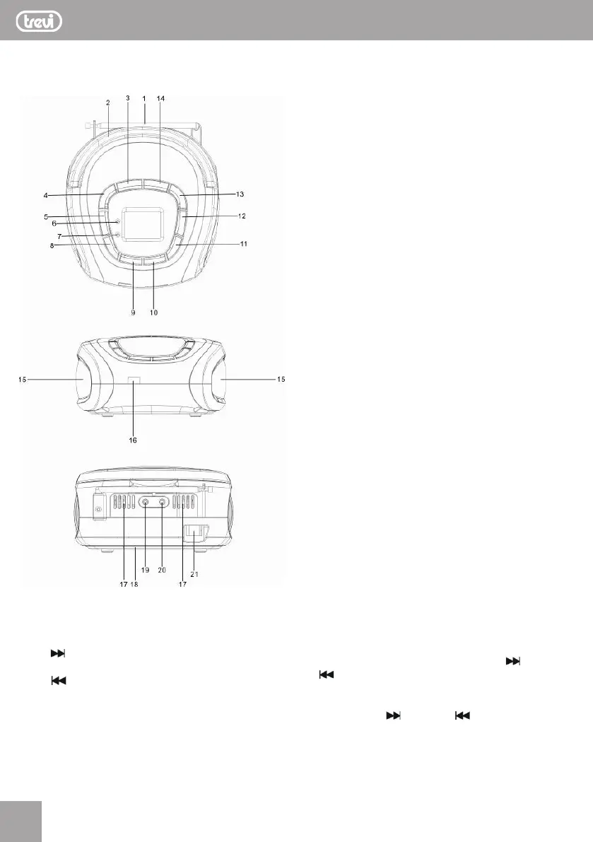 5. Tasto /Tun.-, salto brano precedente/ricerca stazione