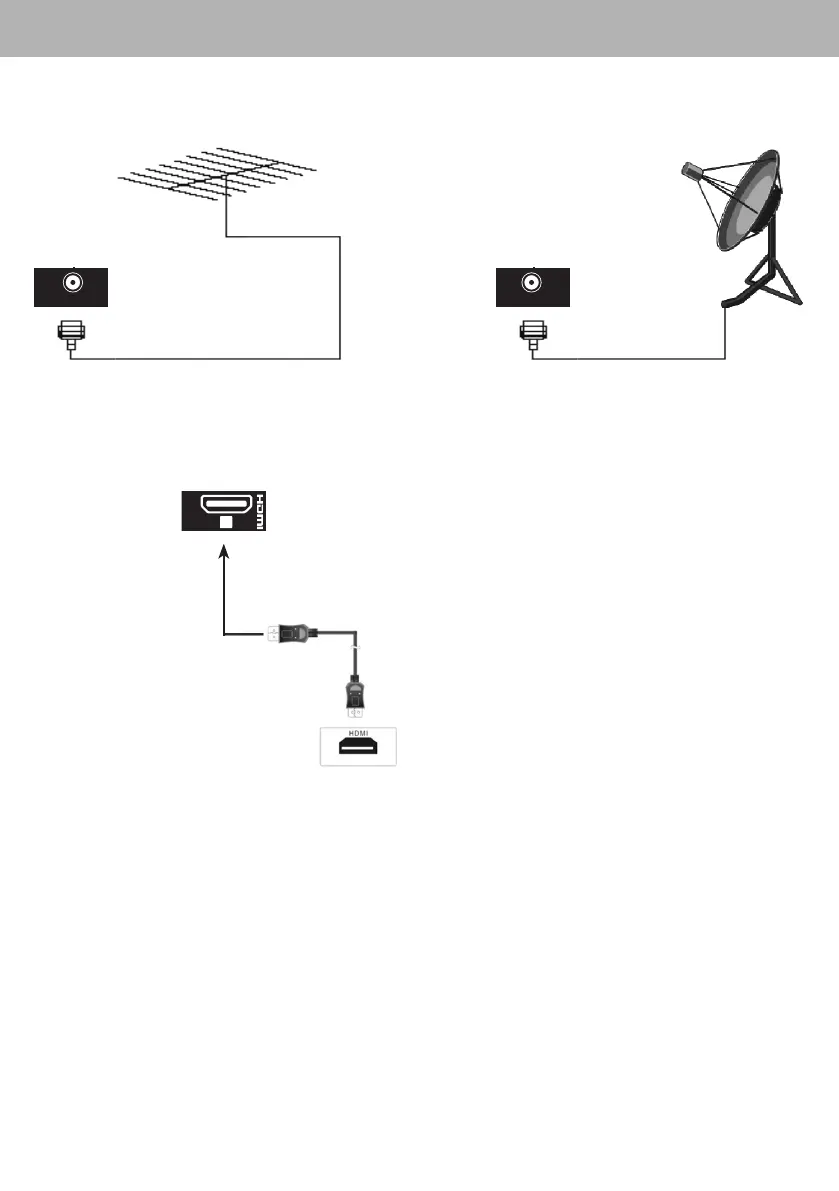 Collegare il cavo d’antenna 75 ohm all’ingresso antenna TV (ANT) posto sul retro del TV.