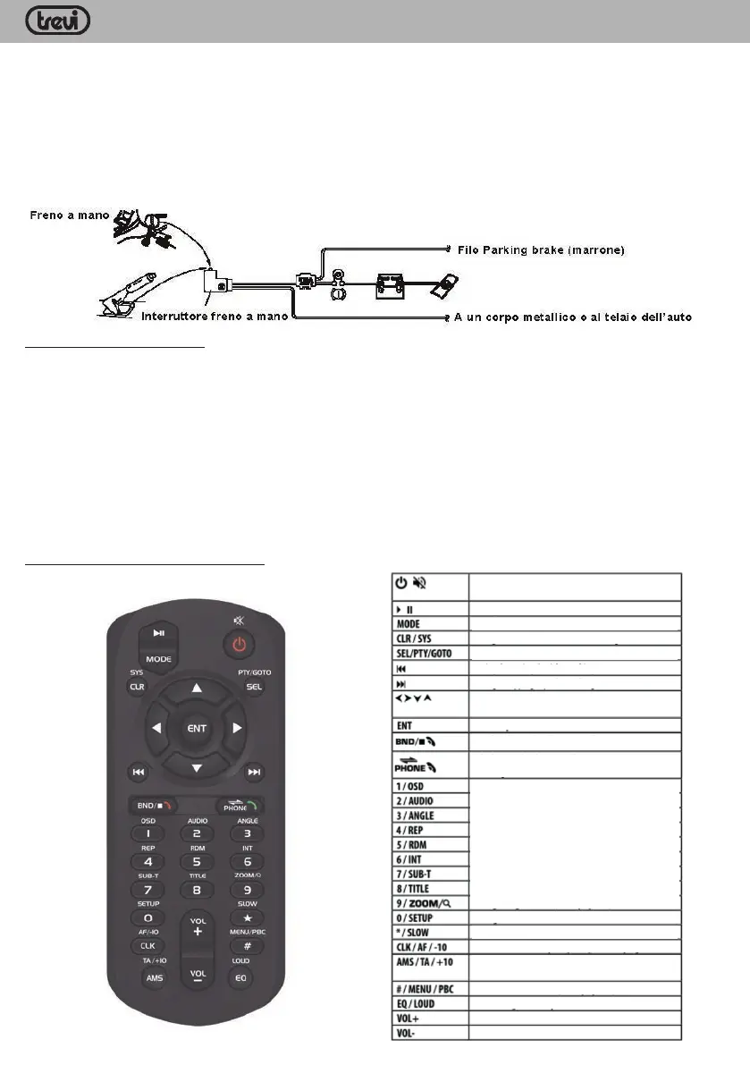 Collegare il filo Marrone all'interruttore del freno a mano come da immagine sottostante; se il filo non viene