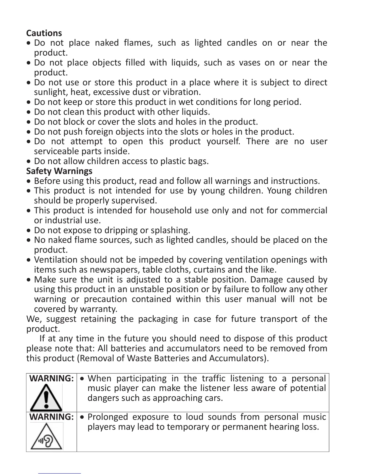 • Do not attempt to open this product yourself. There are no user