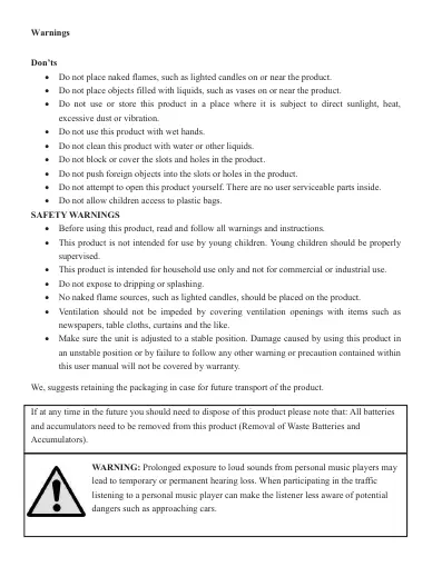 • Do not attempt to open this product yourself. There are no user serviceable parts inside.