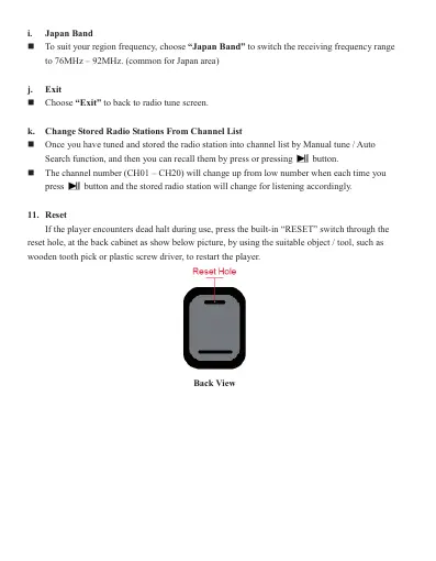 If the player encounters dead halt during use, press the built-in “RESET” switch through the