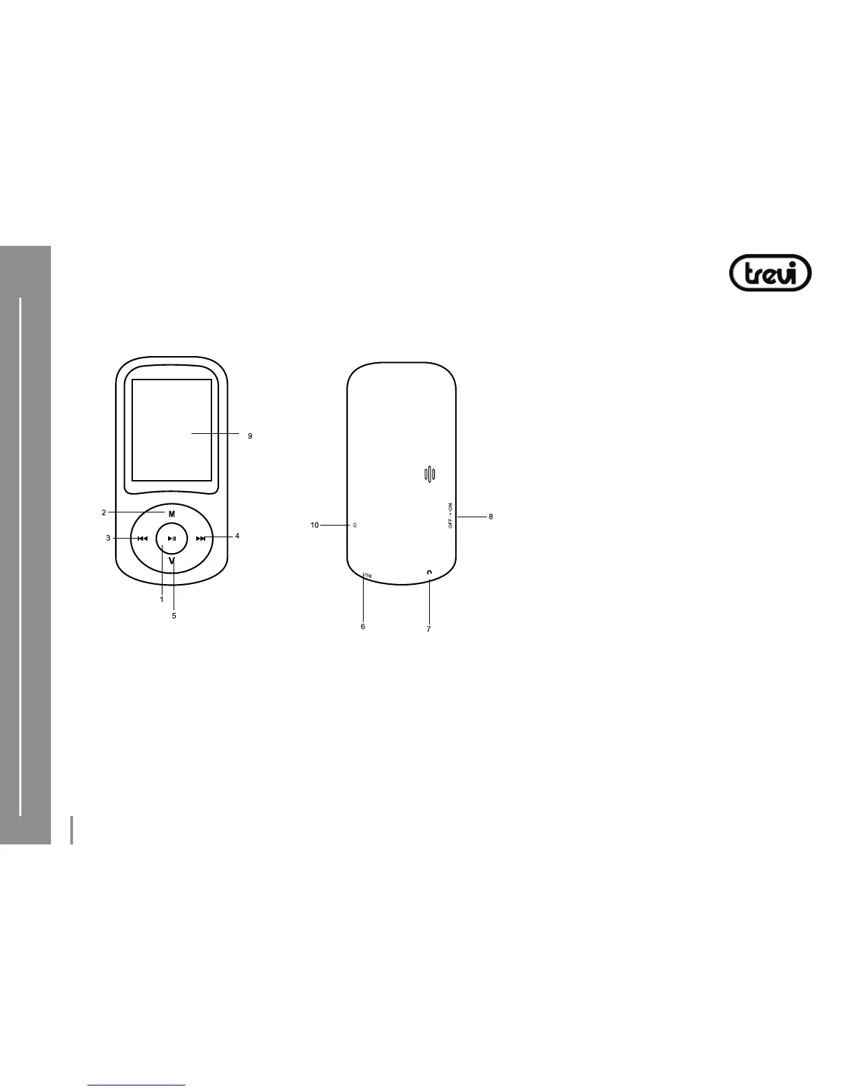 8) ON/OFF button: Power on/off