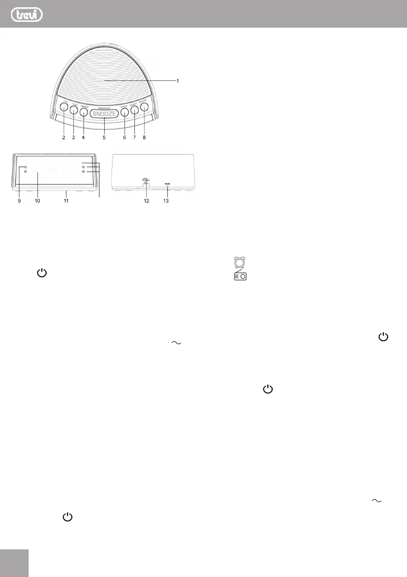 8. Tasto , attivazione Radio/Stand-by/Spegnimento allarme