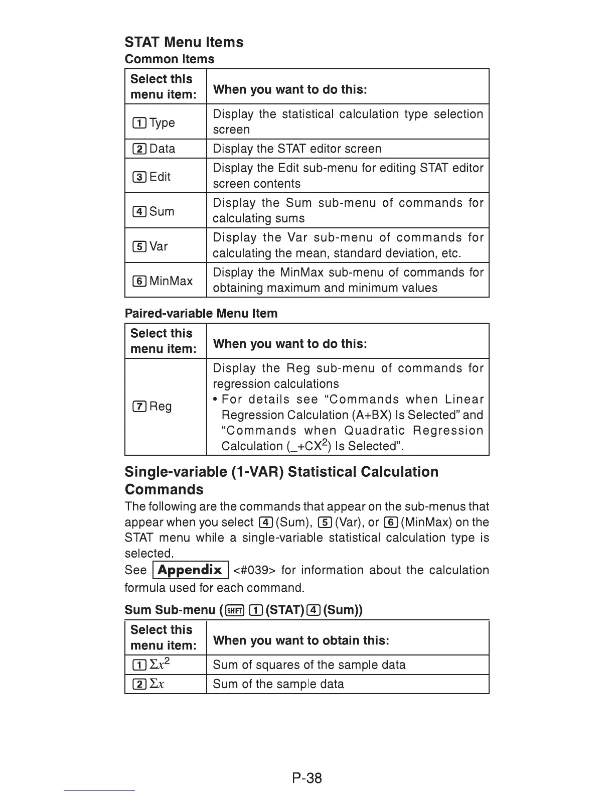 Trevi SC 3790 - STAT Menu Items