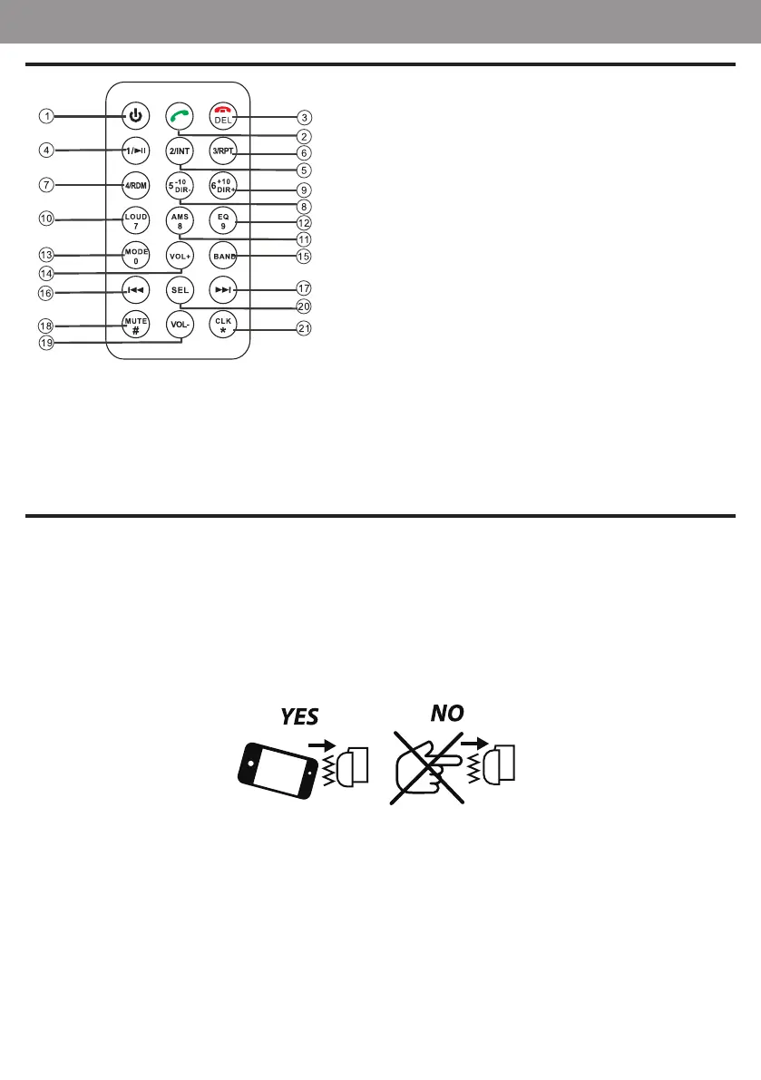 15. Tecla BAND, selección de banda FM1, 2, 3, AM1, 2