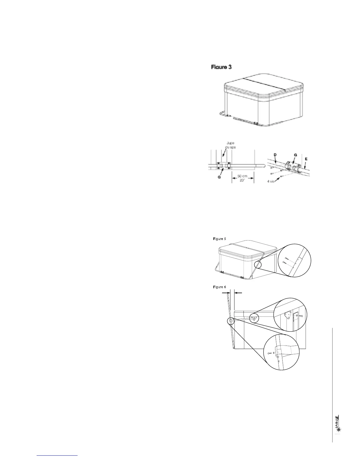 bottom of the spa. Install the frame’s 2 mounting brackets (G)