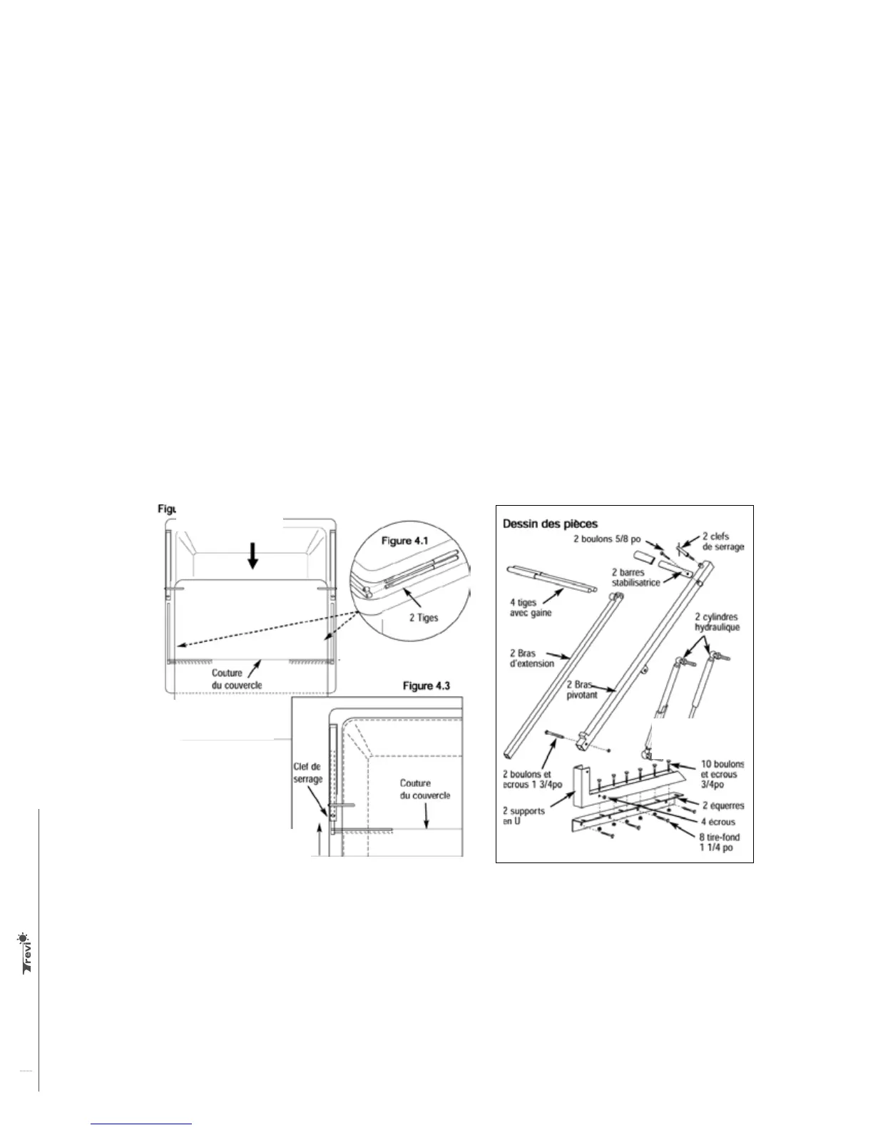 on the top. Screw the 2 pins into the end of each lower side extension arms. (Figure 4.1) Place the spa cover to the