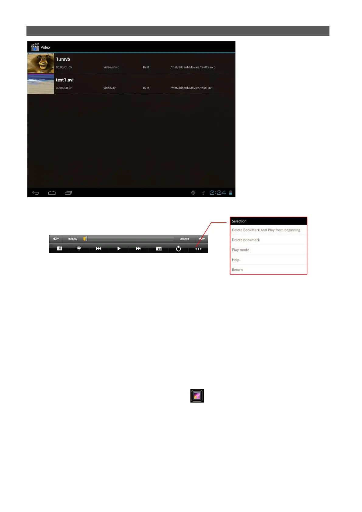 Tramite la barra di controllo potrete controllare e gestire i vostri file Video.