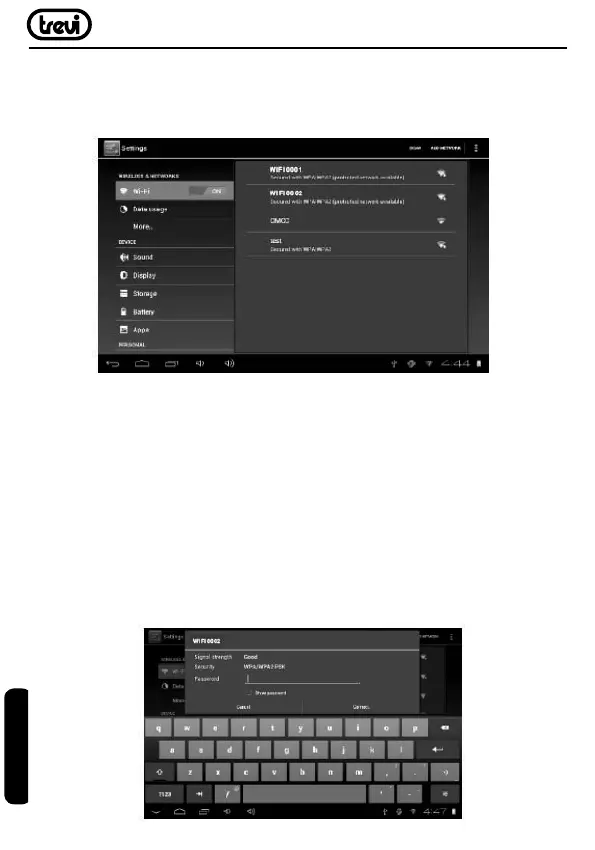 WhenWi-Fiison,thetabletwilllookforanddisplayalistofavailableWi-Finetworks.