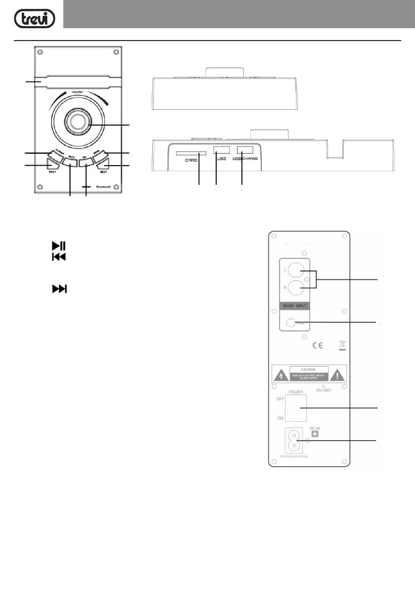 3. Tasto : selezione traccia precedente.