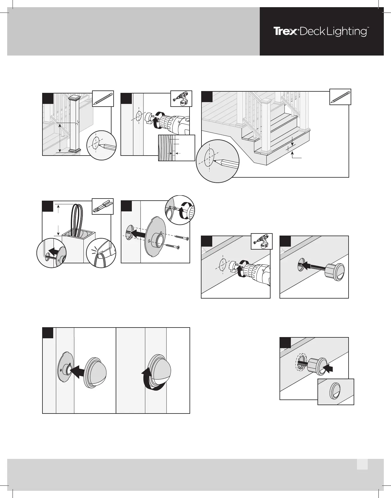Note: Install deck rail lights after the railing system, post