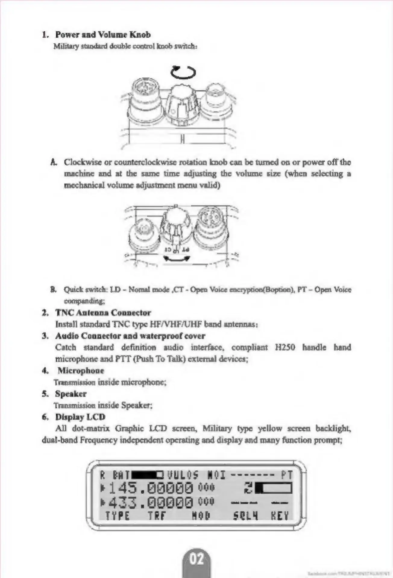 TRI AN/PRC-152H - Radio Interface and Controls; Power and Volume Knob Operation; Antenna, Audio, Mic, Speaker, and Display