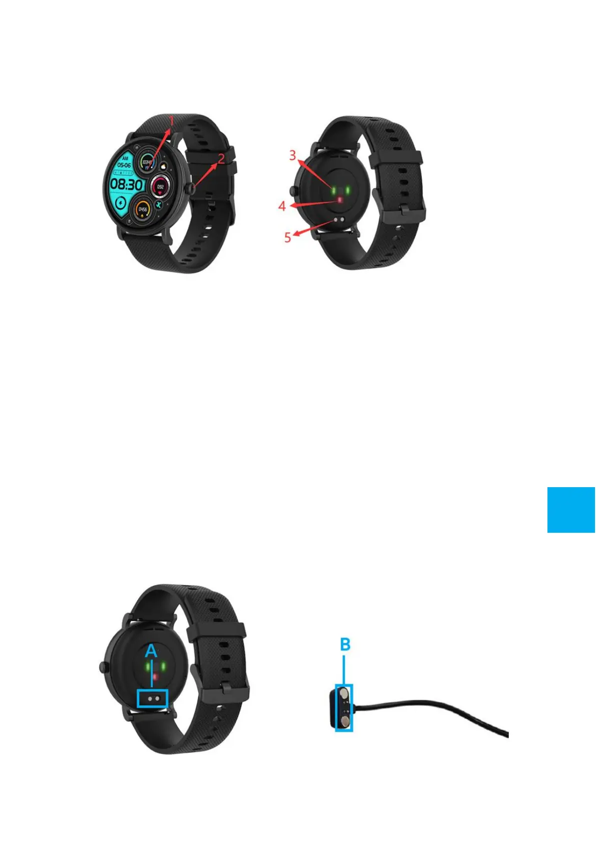 laddningspunkterna på baksidan av smartklockan.
