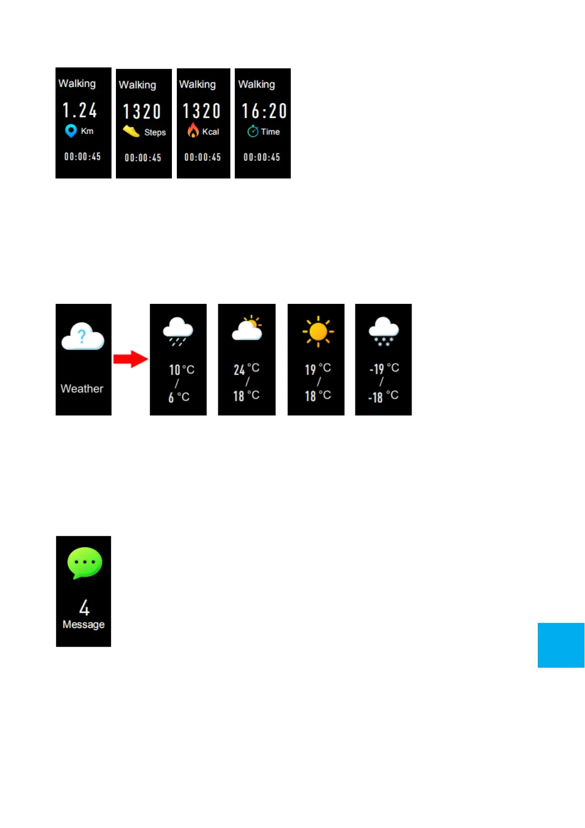 kaupungin sää näytetään Fitness Activity Tracker -rannekkeessa.