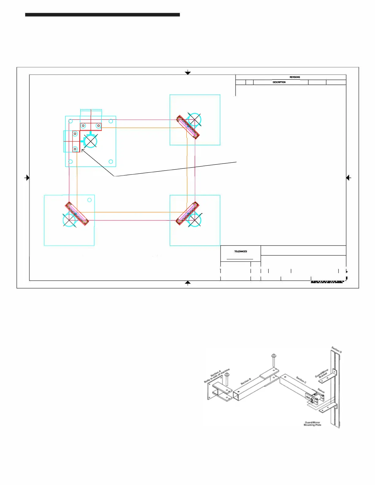 4 Sided Guarding with Dual Stud Guard Brackets, TRM Mirrors and Model #8000 Pedestals