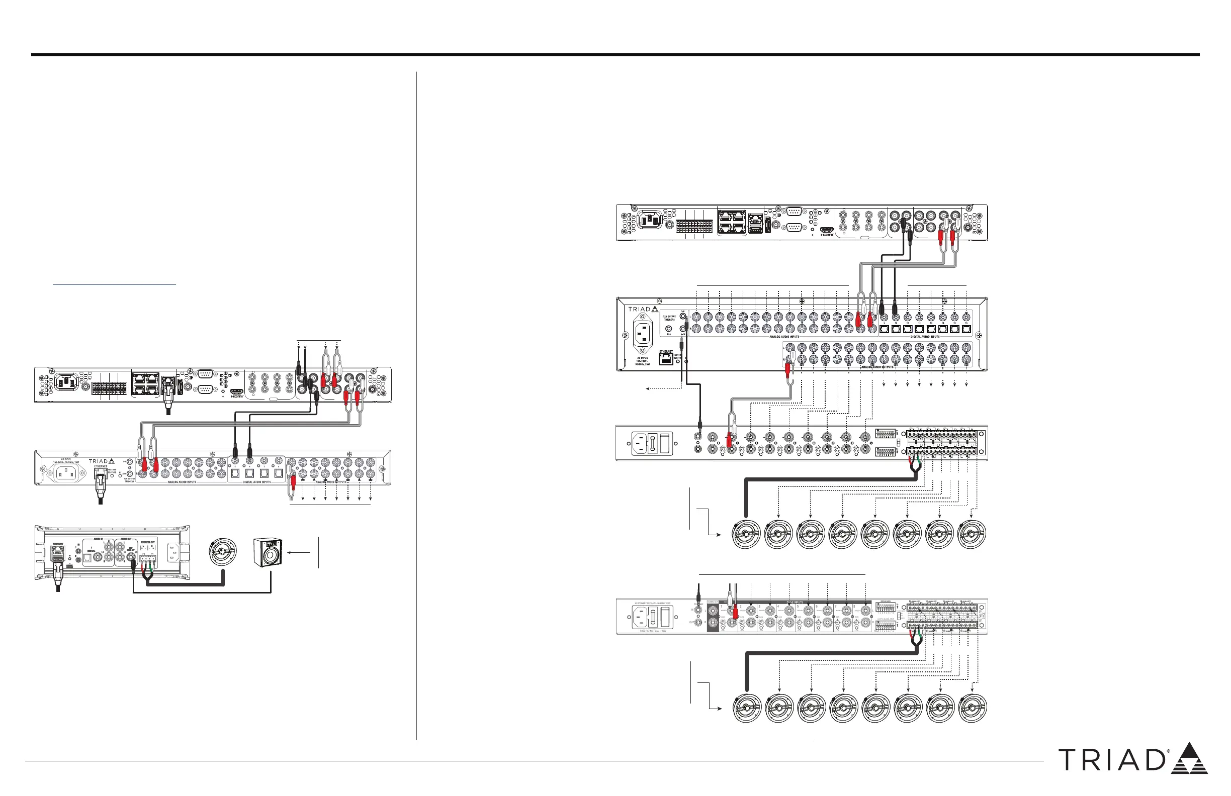 2 Connect the ANALOG AUDIO OUTPUT jacks to amplifiers or amplified speakers. Connect outputs 1-8 to the first Triad 8-Zone Power Amplifier (TS-