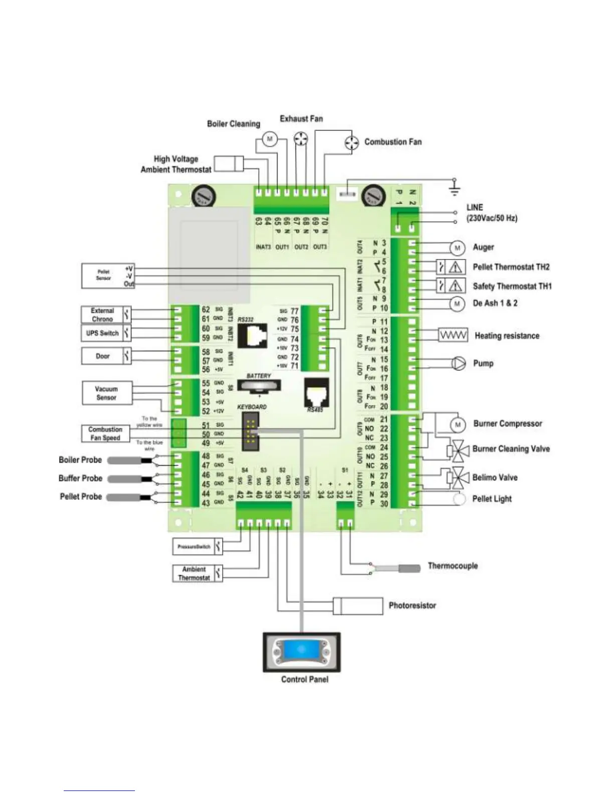 Trianco GREENFLAME 55 - Boiler Control Panel Electrical Schematic
