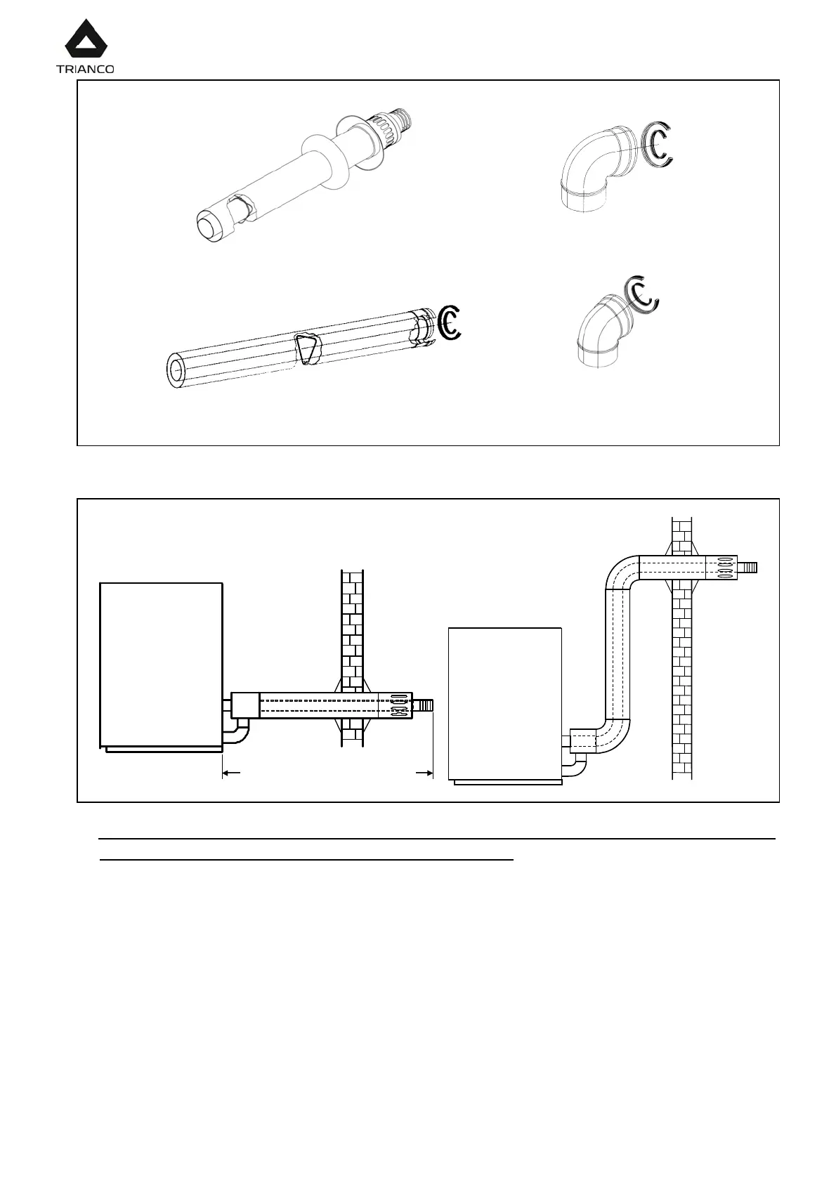 pipes of Ø80 mm. for the combustion products exhaustion and Ø125 mm. for the air intake,