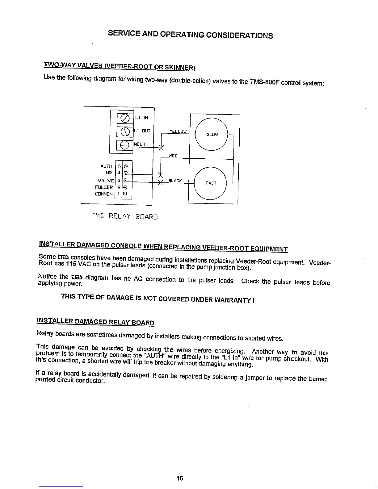 Triangle MicroSystems TMS - 800F - Two-Way Valve Wiring Diagram; Installer Damage Prevention and Warnings