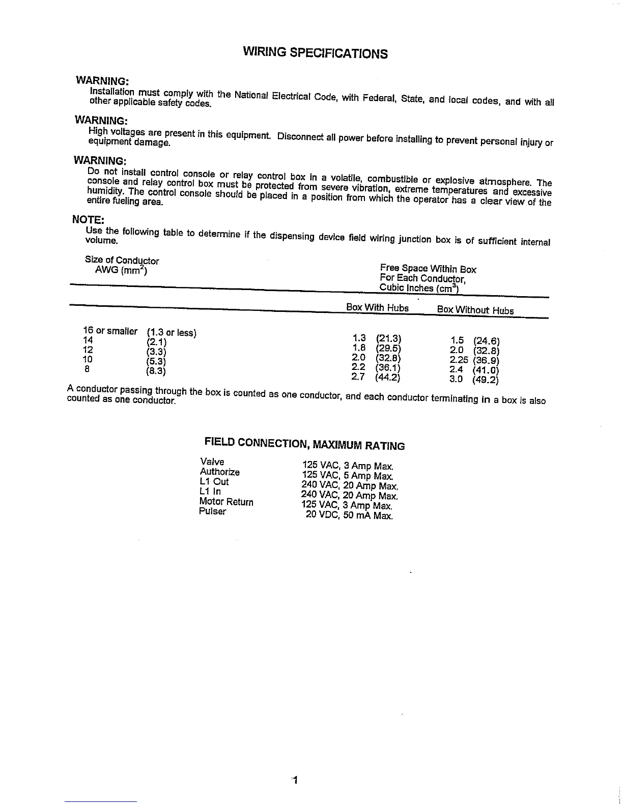 Triangle MicroSystems TMS - 800F - Wiring Specifications; Field Connection, Maximum Rating