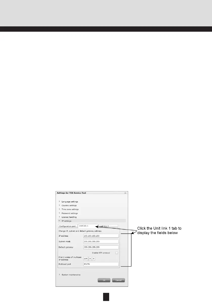 Enter a new IP address, subnet mask and default gateway in the correspond-