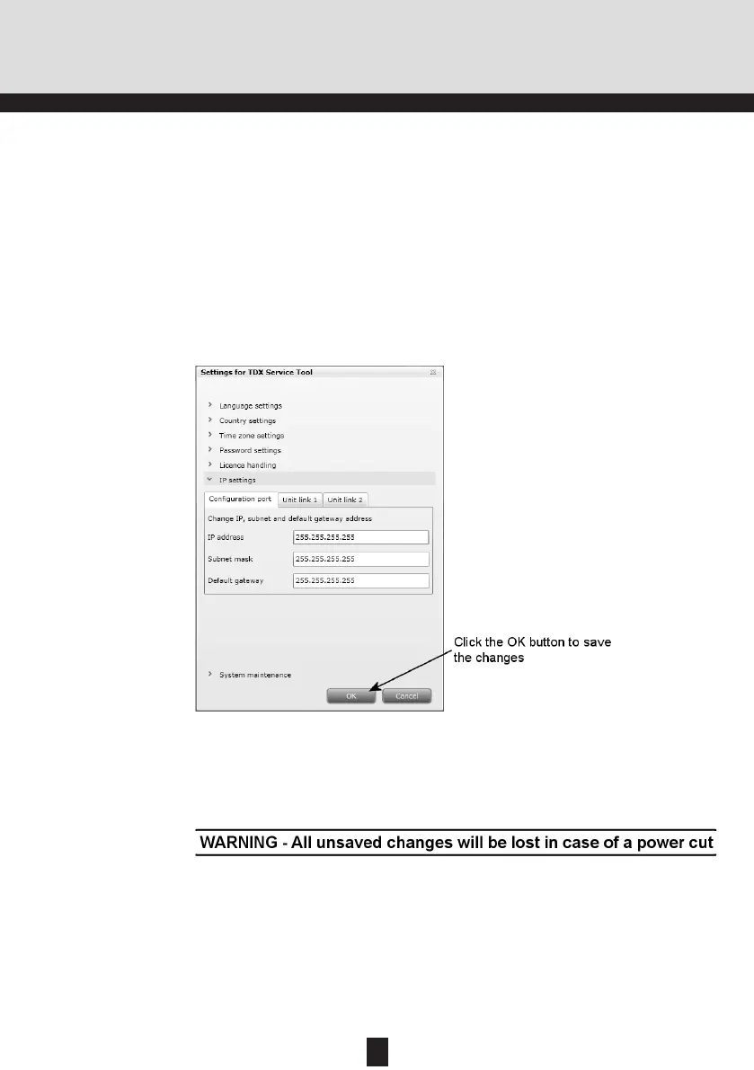 subunit to the Unit link 2 socket and enter an IP address, subnet mask and