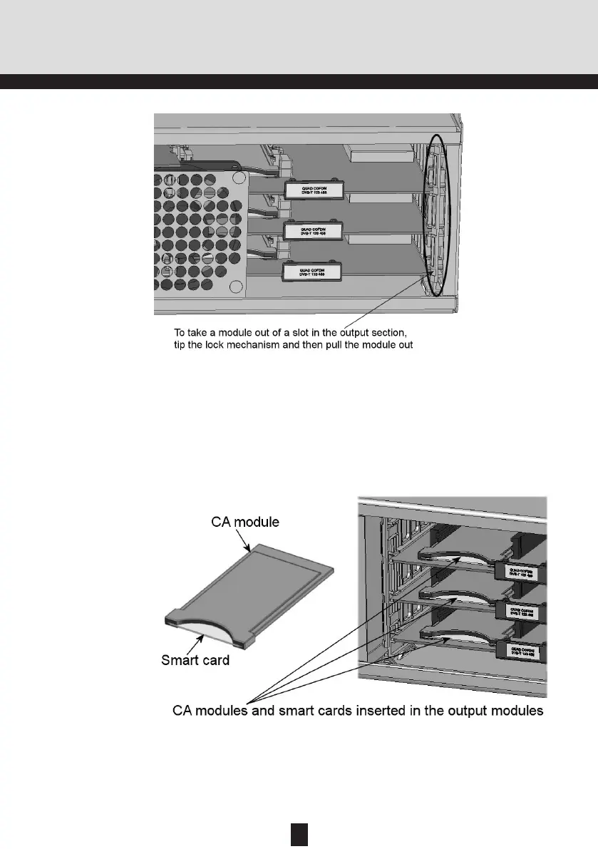 You release an output module from a slot by using the lock mechanism that