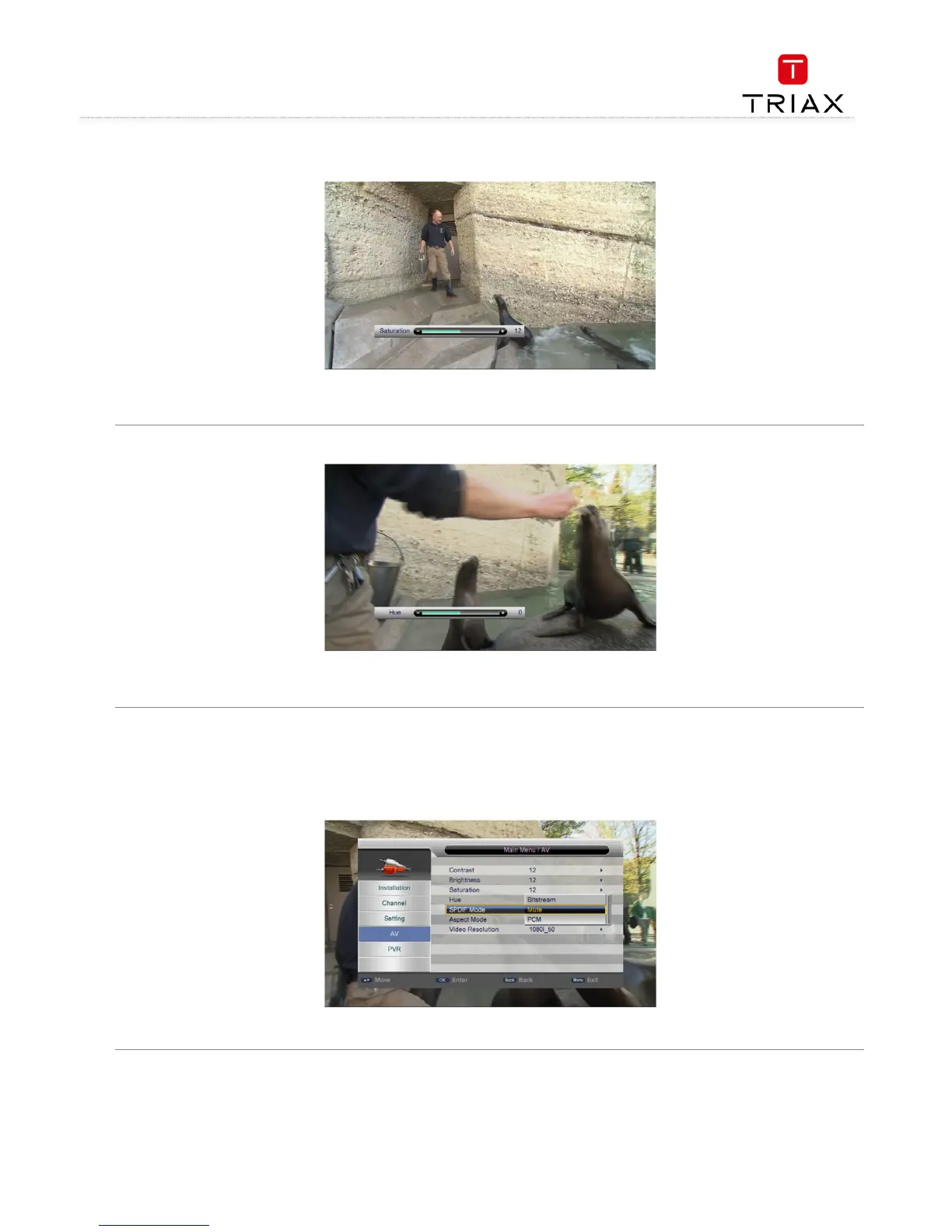 Triax S-HD11 - Saturation; Hue; S;PDIF Mode