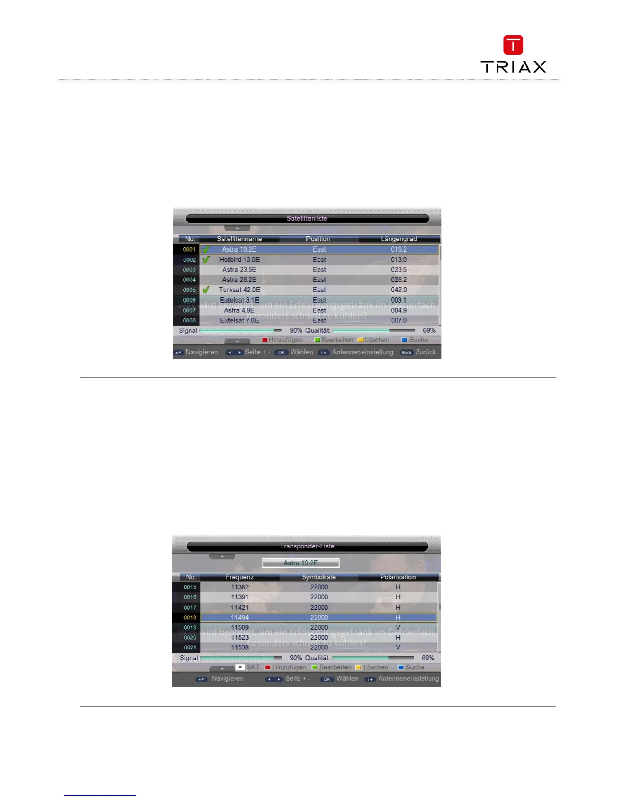 Die Satellitenliste zeigt alle Satelliten auf die im Gerät hinterlegt sind. Sie können nun mit der OK
