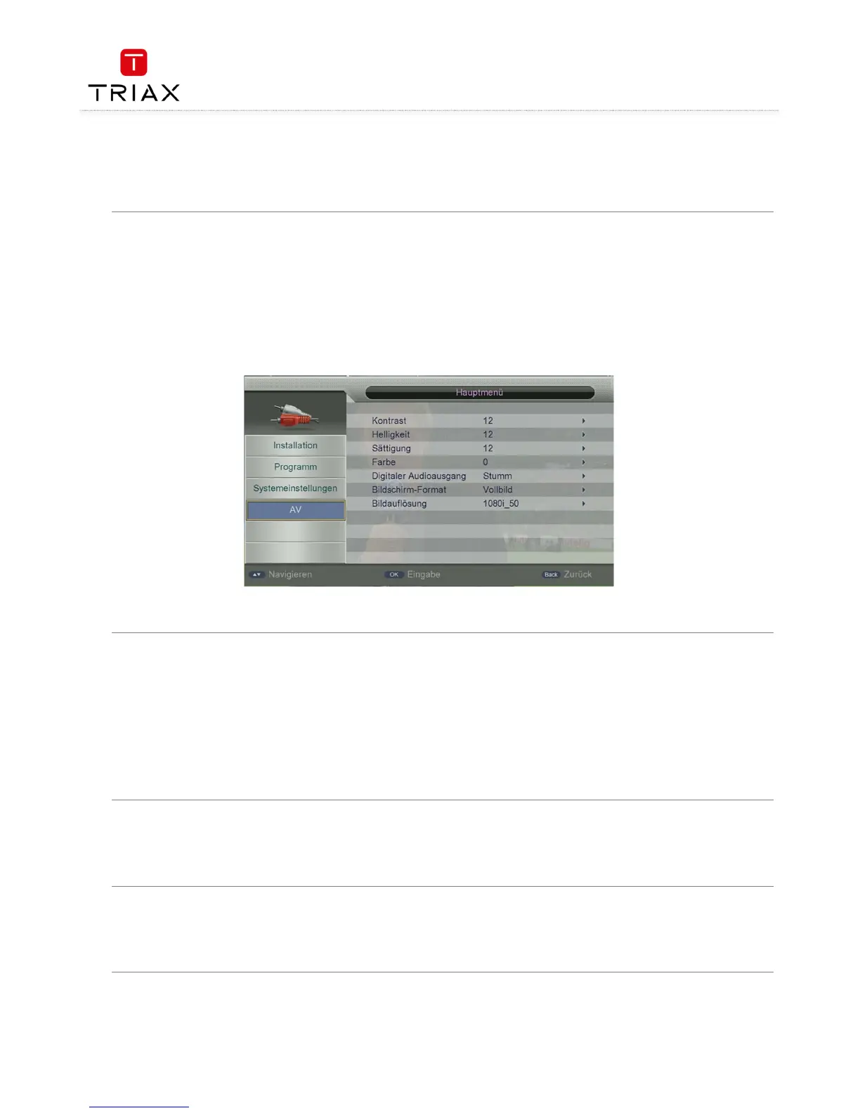 Im AV Menü lassen sich die Einstellungen konfigurieren welche Bild und Ton betreffen.