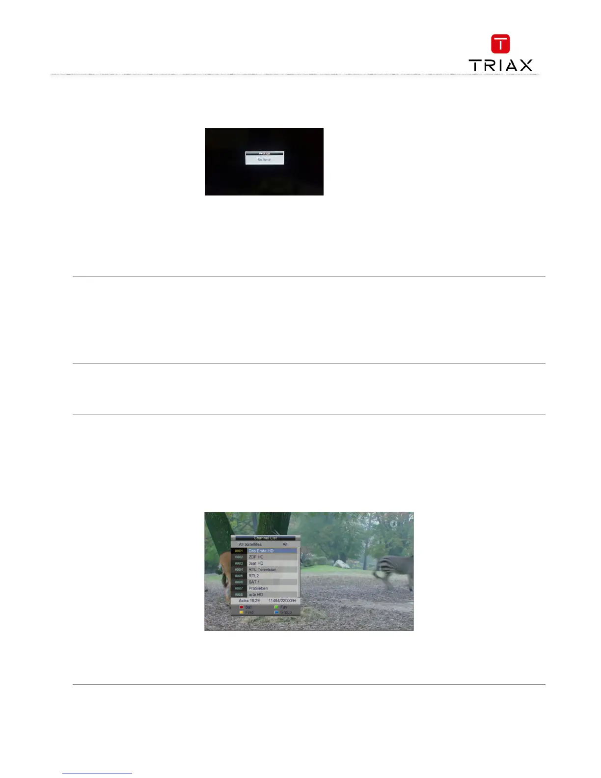 After power on, the system will enter the DVB mode. If there is no program data in the database, the following message will appear: