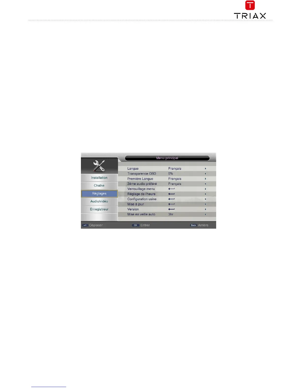 Le menu « réglages système » vous permet de personnaliser un certain nombre de réglages suivants :